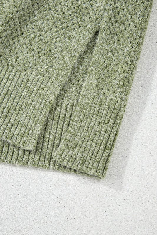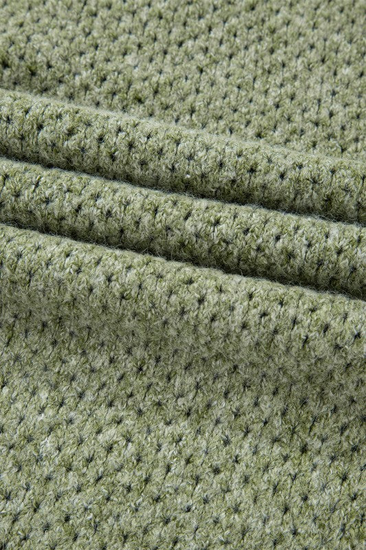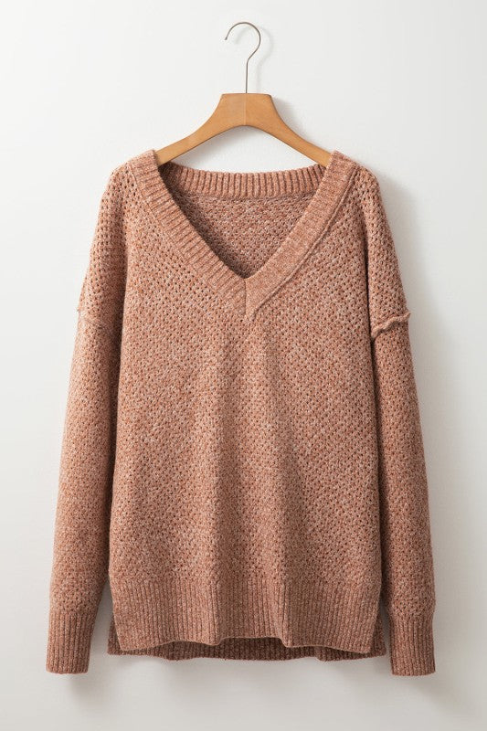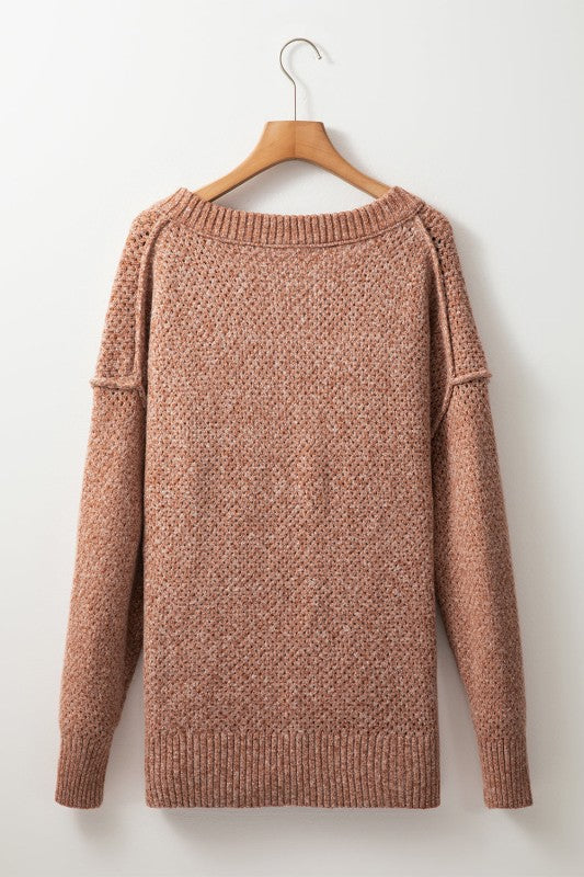 Solid Eyelet V-Neck Drop Shoulder Sweater