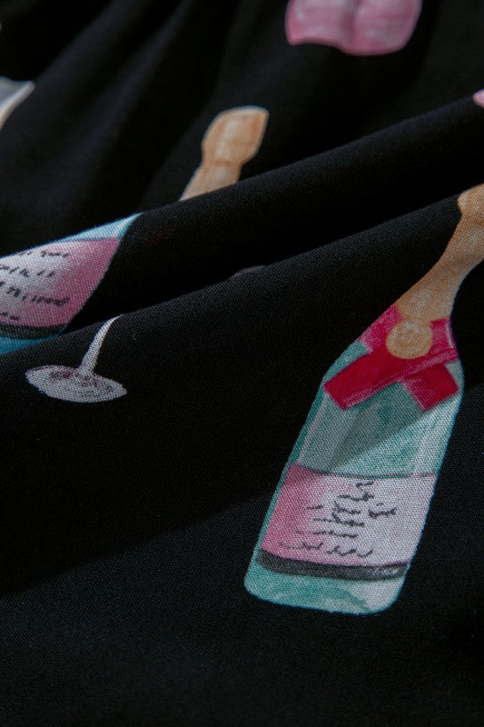 Raise a glass to cozy nights in this whimsical pajama set! Featuring charming prints and adorable bow knot details, it's the perfect blend of festive fun and comfort. The coordinating top and shorts create a complete, stylish sleepwear ensemble that's ideal for holiday relaxation or everyday lounging. Playful, sophisticated, and oh-so-comfortable—because your pajamas deserve to be as fabulous as you are. 100% Viscose